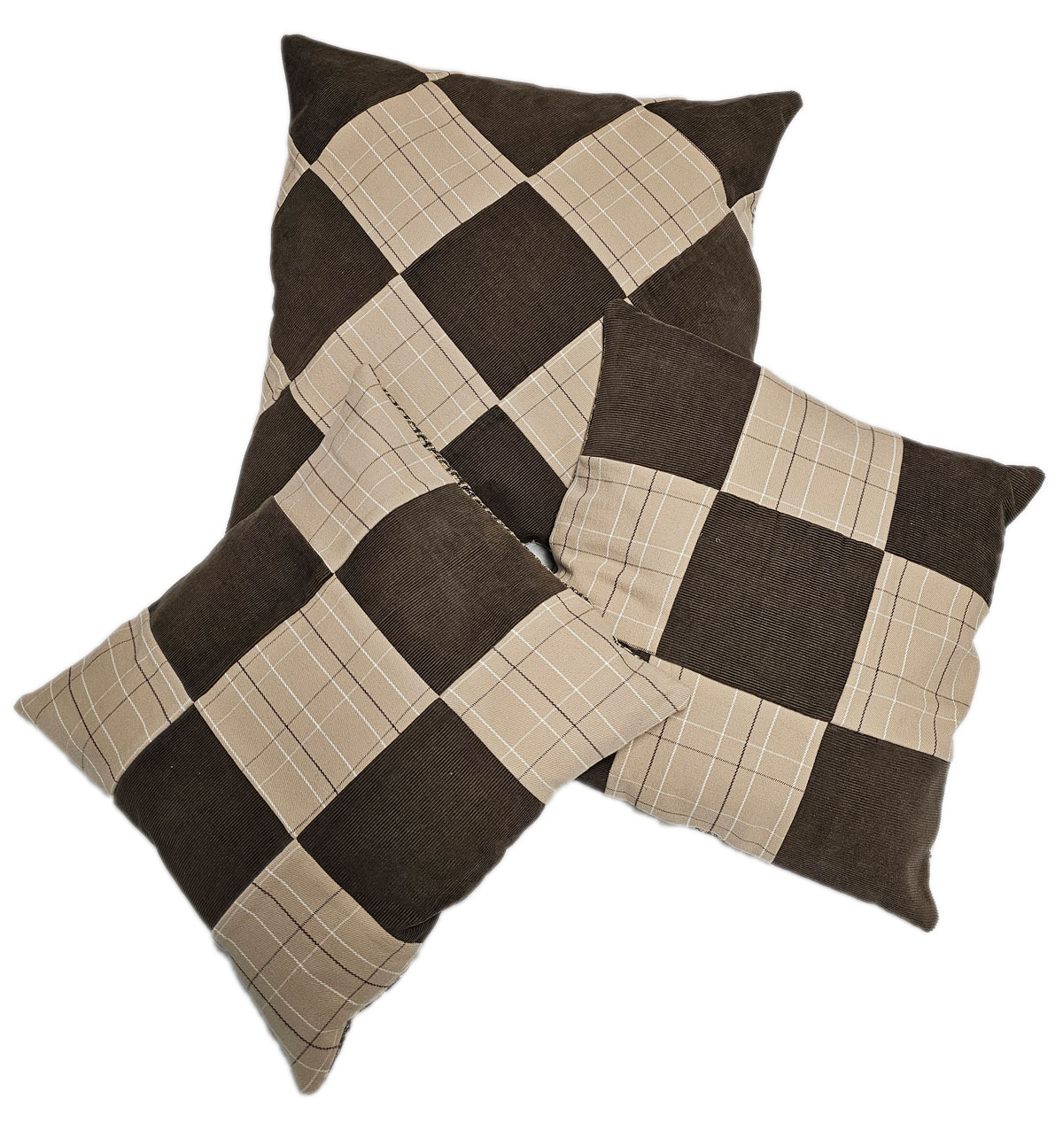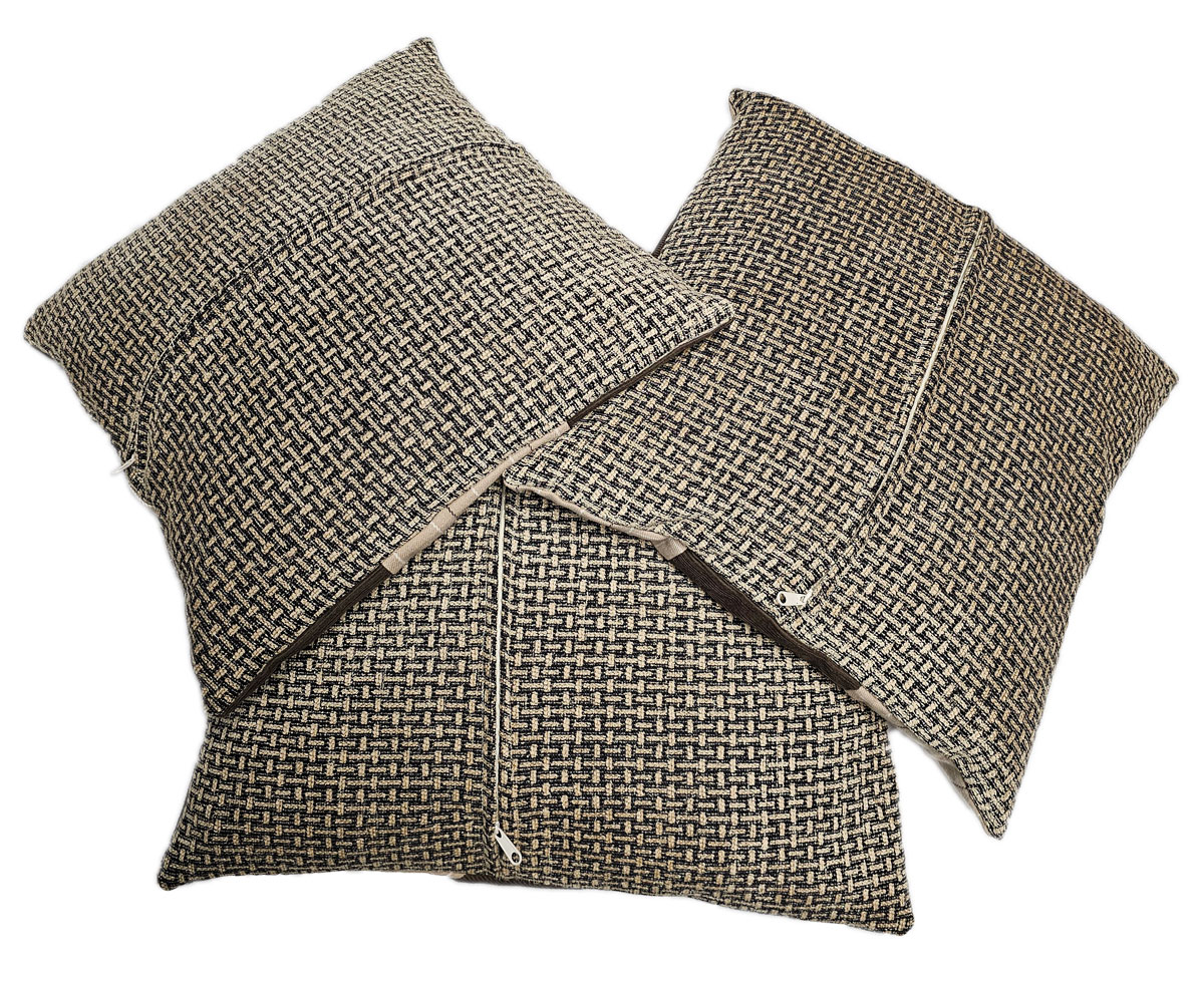 3 Kissenbezüge aus Cord- und Baumwollstoff, Rückseite mit Reißverschluss