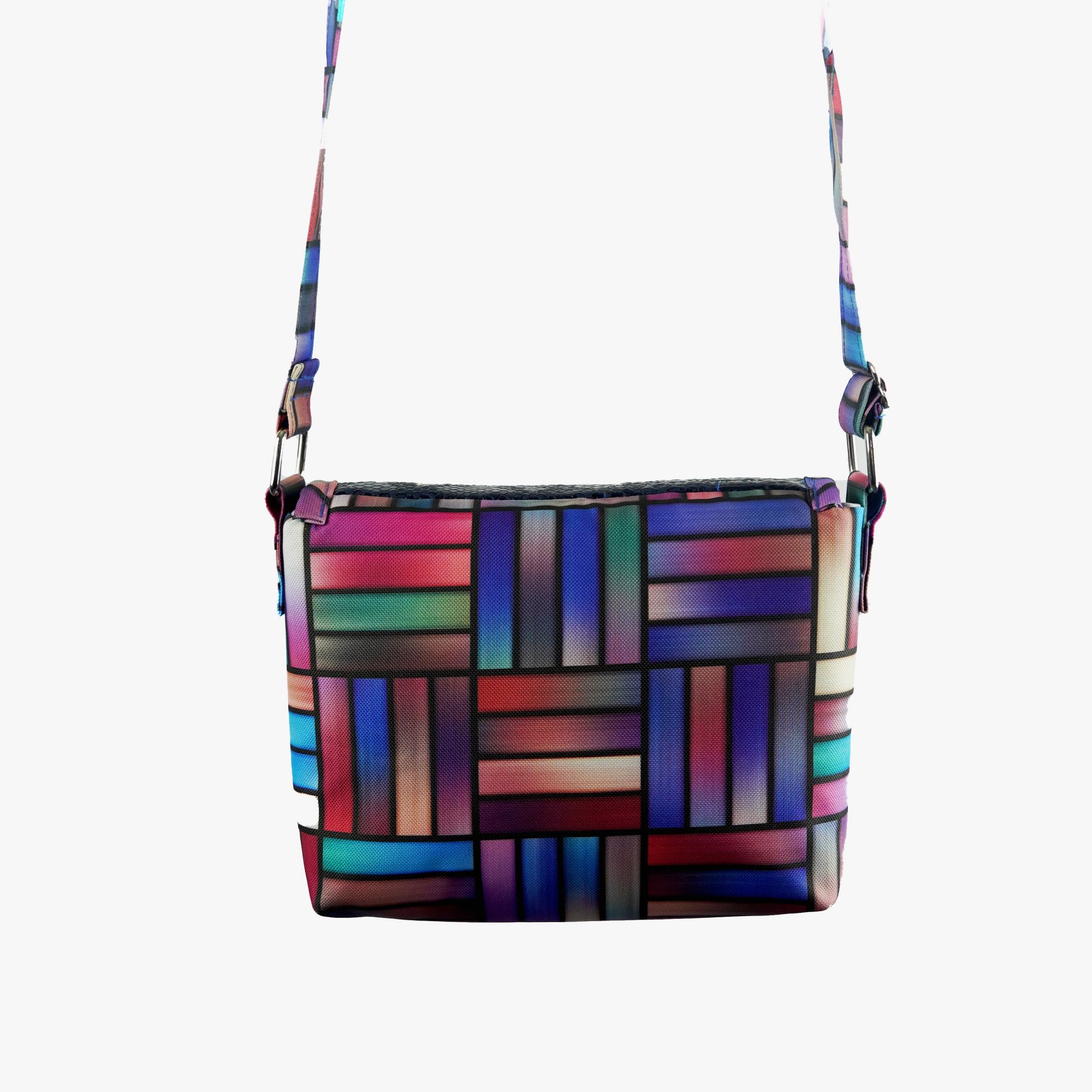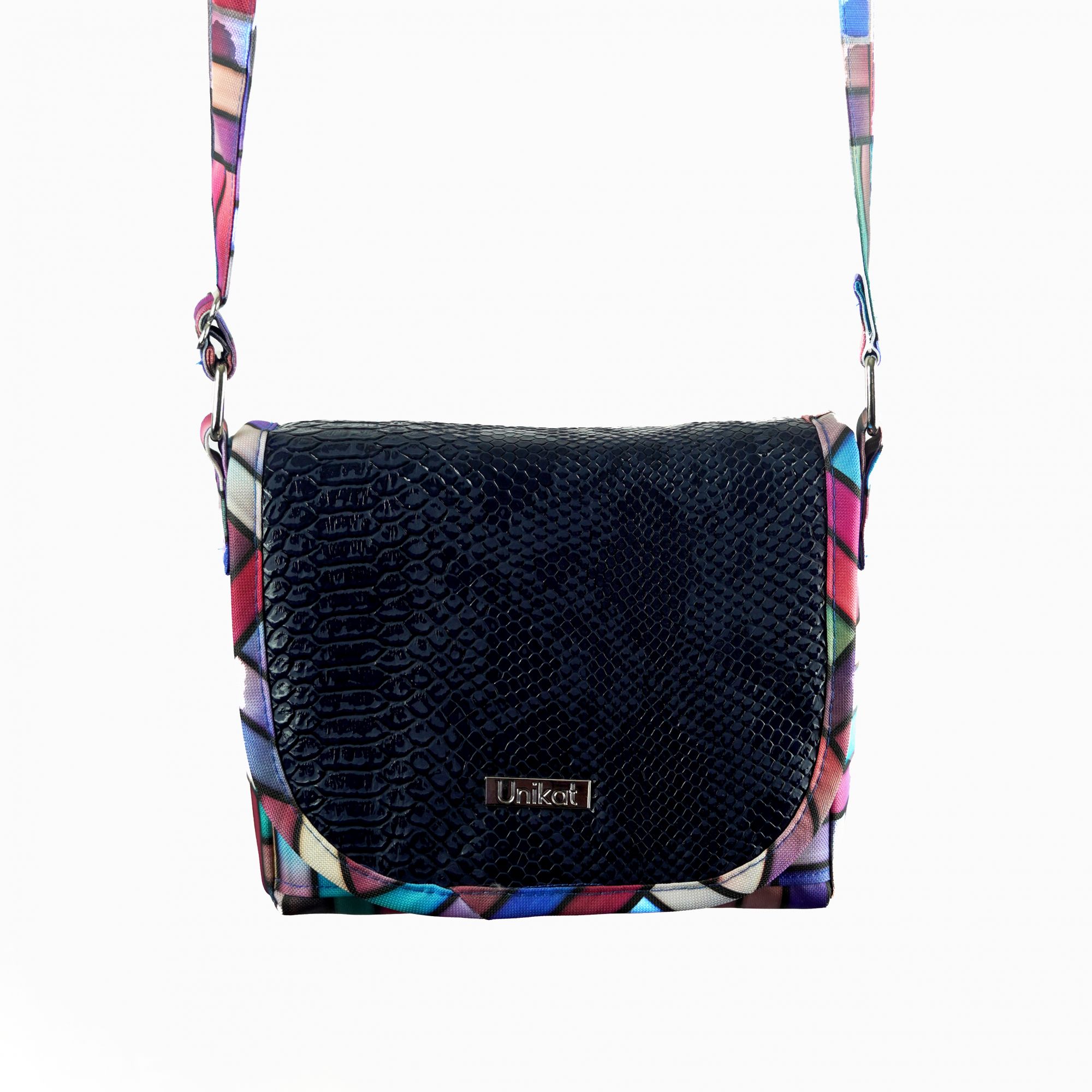 BxHxT 21cm x 16cm x 6cm ; verstellbarer Gurt 120cm ; Klettverschlussaußen ; 1 Steckfach außen, 2 Stechfächer und 1 Reißverschlussfach innen