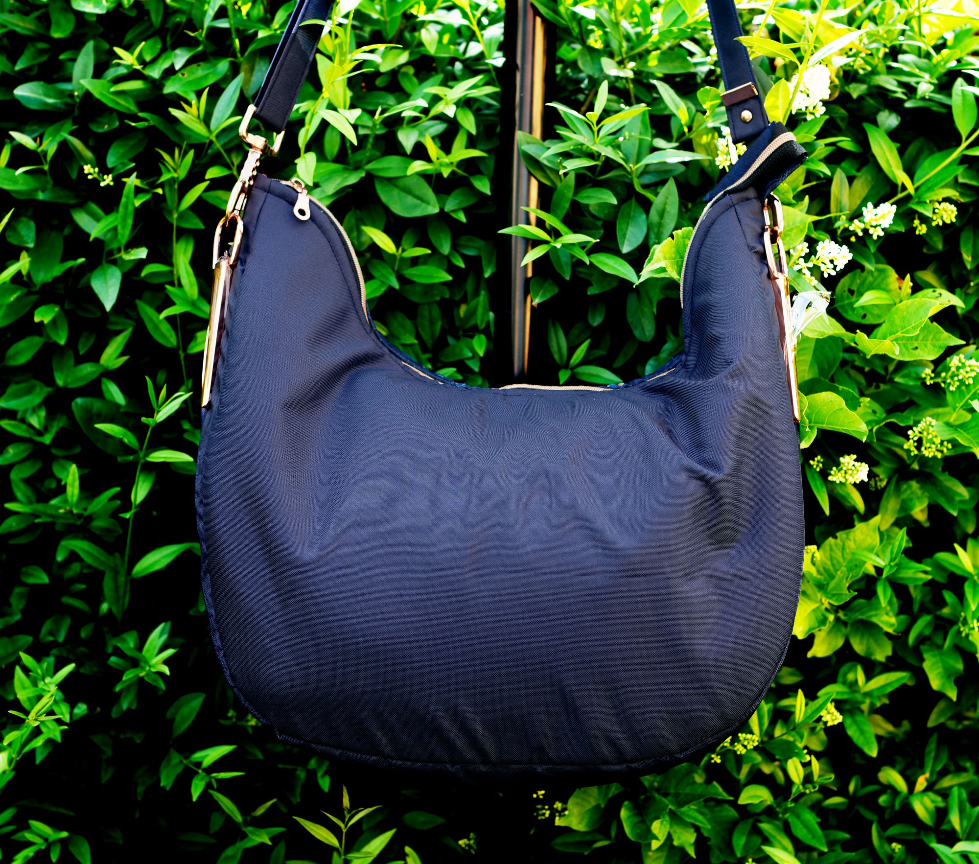 Schultertasche mit einem langen Henkel (verstellbar); 1 Reißverschlussfach plus 2 Steckfächer innen